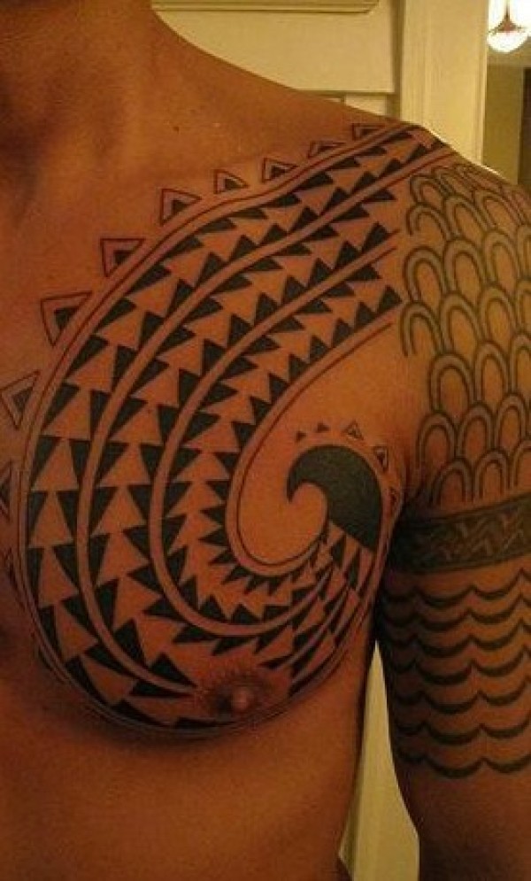 披肩传统的夏威夷纹身_胸部纹身图案大全_纹身图吧