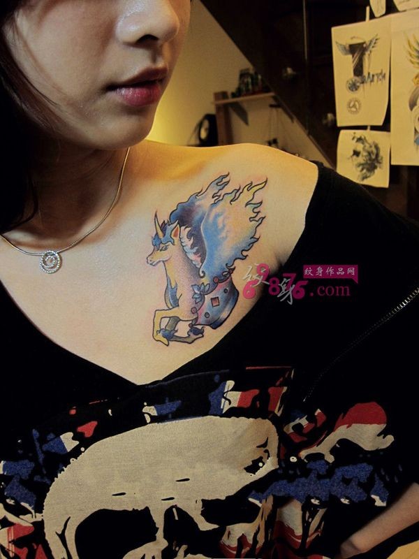 梦幻独角兽锁骨纹身_胸部纹身图案大全_纹身图吧