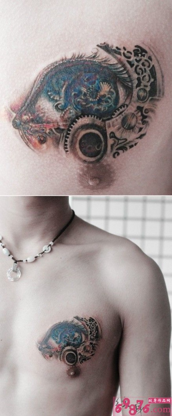 男人胸前超酷的彩色狮头纹身图案_胸部纹身图案大全_纹身图吧