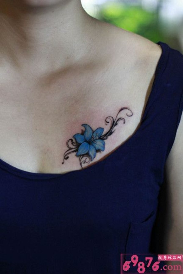 清新鲜花胸部纹身_胸部纹身图案大全_纹身图吧