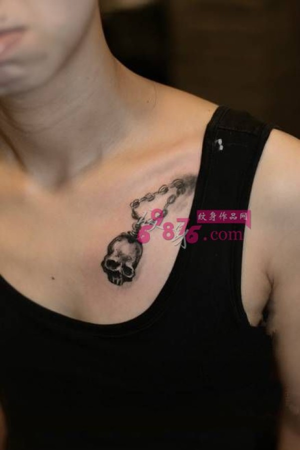 个性锁骨骷髅项链纹身_胸部纹身图案大全_纹身图吧