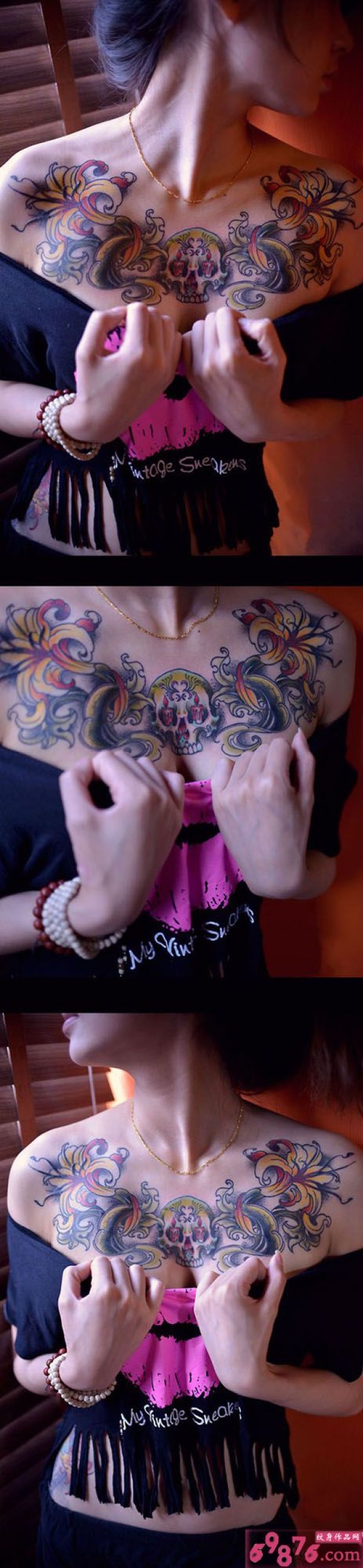 胸前漂亮潮流的美女纹身图案_胸部纹身图案大全_纹身图吧