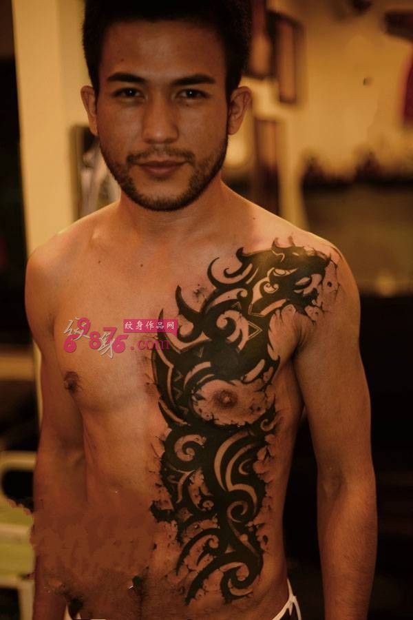 个性帅哥霸气石裂图腾纹身_胸部纹身图案大全_纹身图吧