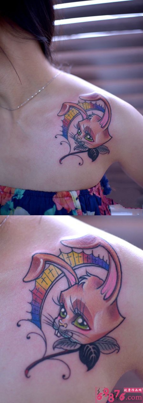 个性兔子花锁骨时尚纹身_胸部纹身图案大全_纹身图吧