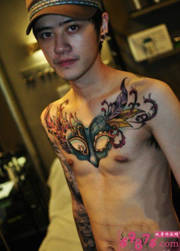 型男胸前时尚面具纹身_胸部纹身图案大全_纹身图吧