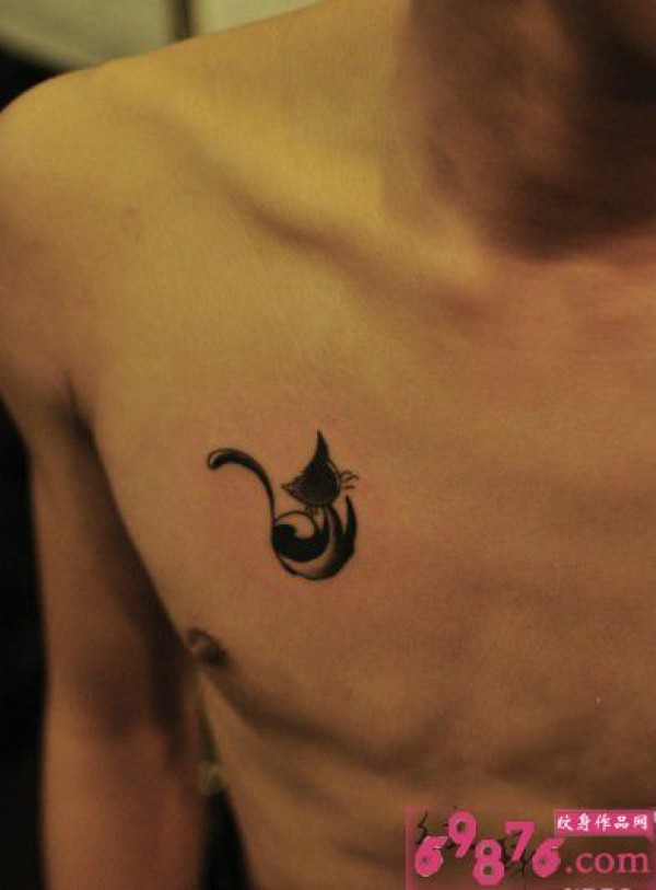 胸口小黑猫纹身_胸部纹身图案大全_纹身图吧