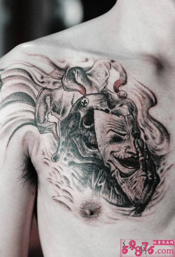 创意骷髅小丑面具胸口纹身_胸部纹身图案大全_纹身图吧