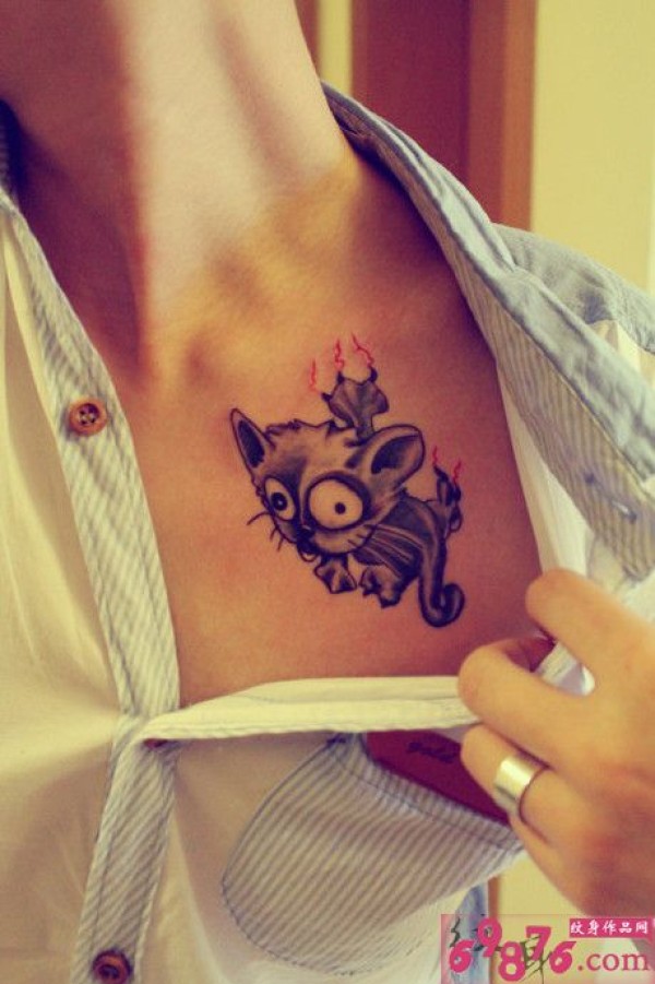 锁骨创意小动物纹身_胸部纹身图案大全_纹身图吧
