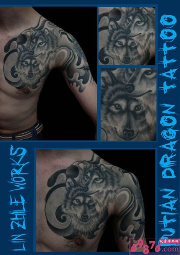 胸口披肩狼头纹身图案_胸部纹身图案大全_纹身图吧