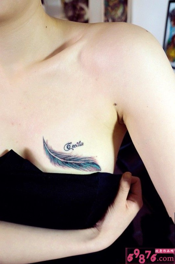 胸部性感的羽毛英文_胸部纹身图案大全_纹身图吧