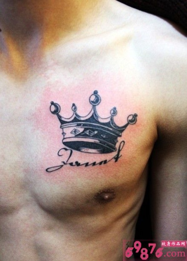 男人胸前皇冠图腾时尚纹身_胸部纹身图案大全_纹身图吧