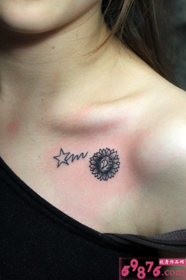 锁骨上星星向日葵纹身小图_胸部纹身图案大全_纹身图吧