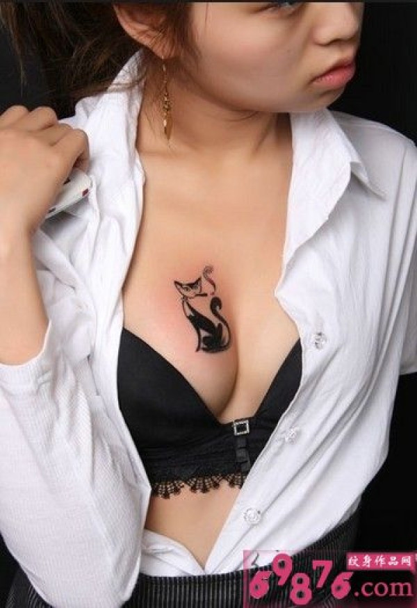 性感胸部猫咪纹身贴_胸部纹身图案大全_纹身图吧
