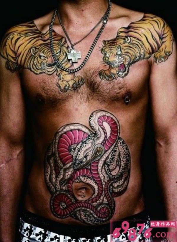 男人胸前霸气老虎蛇对战_胸部纹身图案大全_纹身图吧
