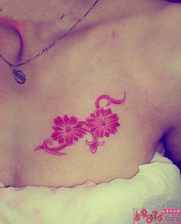 性感女人胸部娇艳梅花纹身_胸部纹身图案大全_纹身图吧