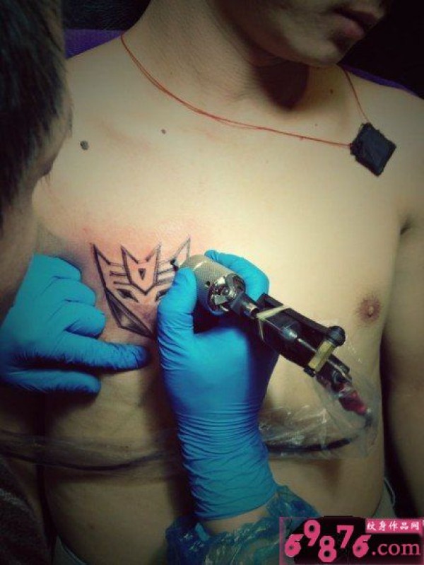 男人胸部变形金刚标志纹身现场_胸部纹身图案大全_纹身图吧