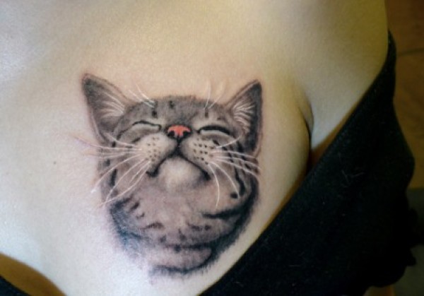 胸上微笑小猫纹身_胸部纹身图案大全_纹身图吧