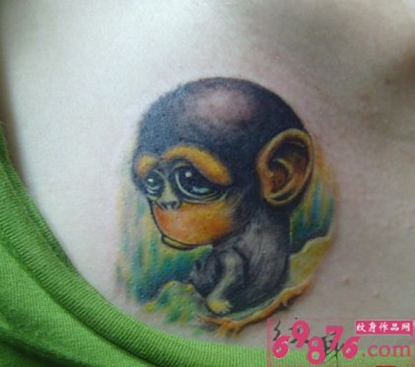 女孩胸前可爱小猩猩纹身_胸部纹身图案大全_纹身图吧