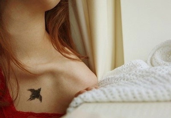 胸前一只可爱的小燕子纹身_胸部纹身图案大全_纹身图吧