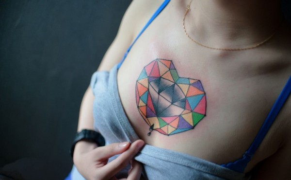 胸部绚丽的几何纹身_胸部纹身图案大全_纹身图吧