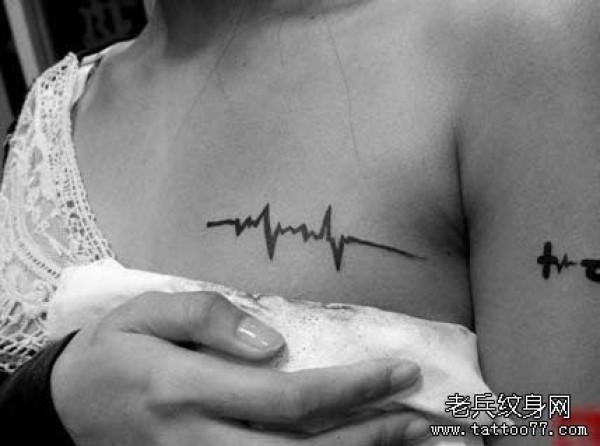 女人胸部简单潮流的心电图纹身图片_胸部纹身图案大全_纹身图吧
