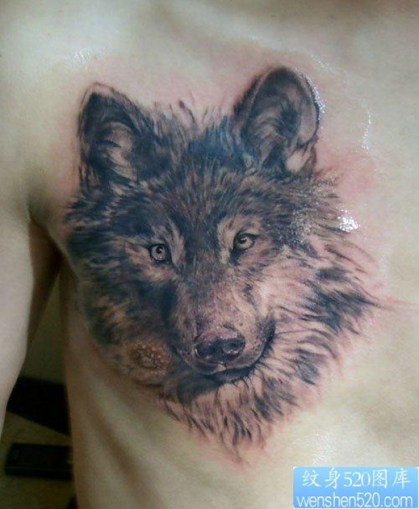 男人胸前很酷潮流的狼头纹身作品_胸部纹身图案大全_纹身图吧