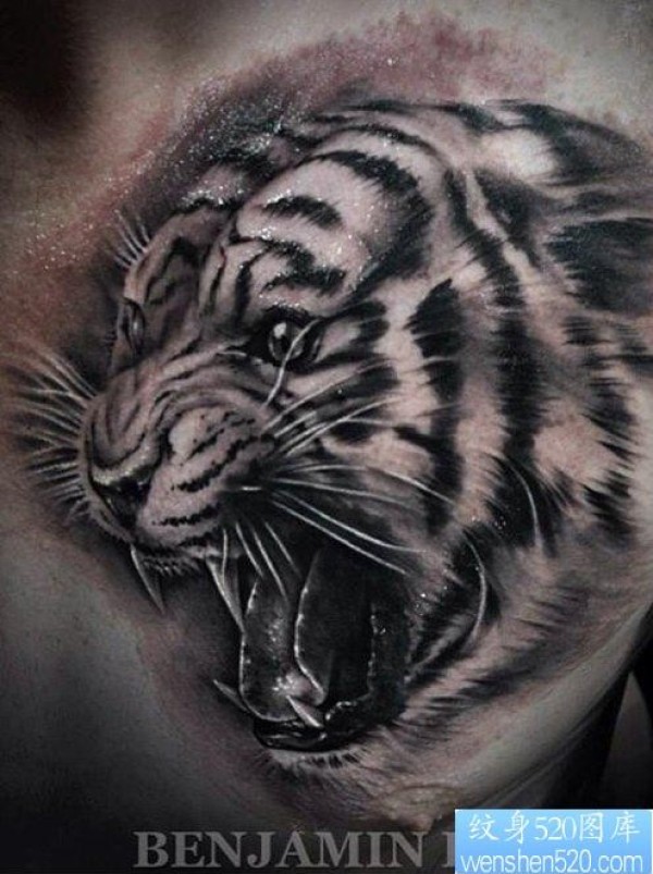 胸部霸气的老虎纹身图片_胸部纹身图案大全_纹身图吧