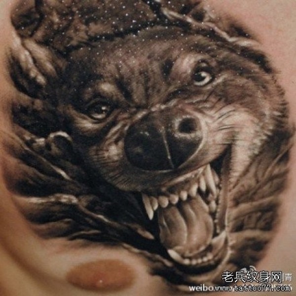 胸部超帅凶狠的狼头纹身作品_胸部纹身图案大全_纹身图吧