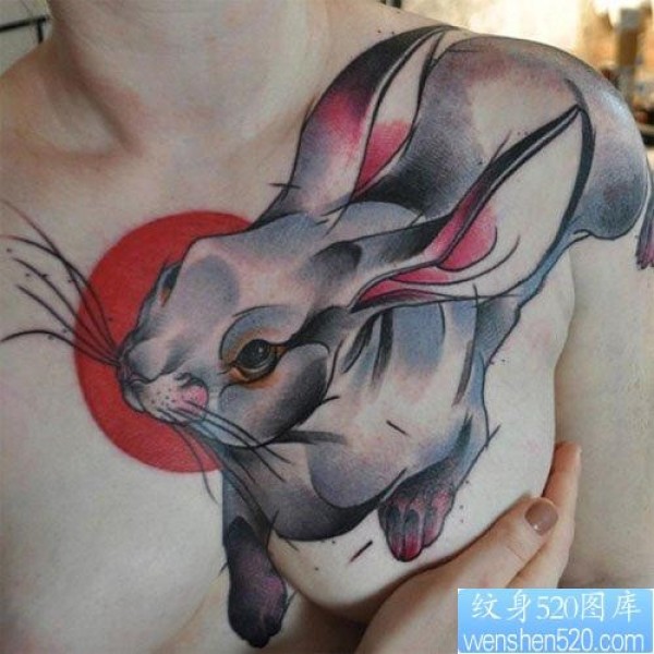 美女胸前一张经典的兔子纹身图片_胸部纹身图案大全_纹身图吧