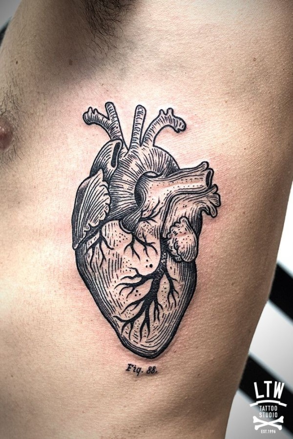 男士胸部一颗跳动的心脏纹身_胸部纹身图案大全_纹身图吧
