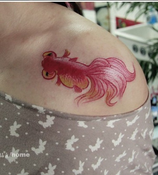胸部锁骨盘边的小金鱼_胸部纹身图案大全_纹身图吧