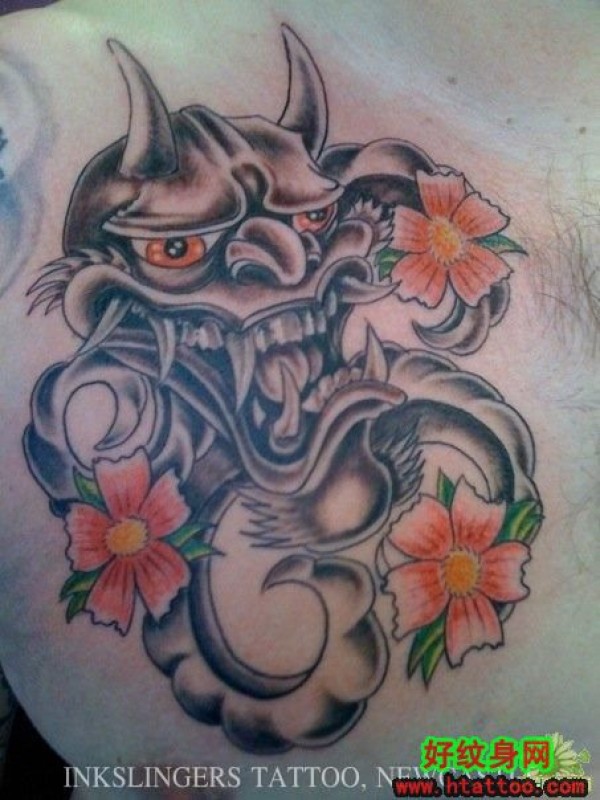 男人胸前超酷的彩色狮头纹身图案_胸部纹身图案大全_纹身图吧