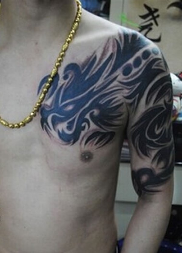 气势恢宏的胸部半甲龙纹身图_胸部纹身图案大全_纹身图吧