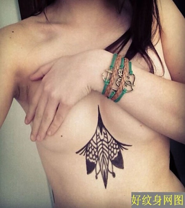 美女胸部下方的图腾纹身图片_胸部纹身图案大全_纹身图吧