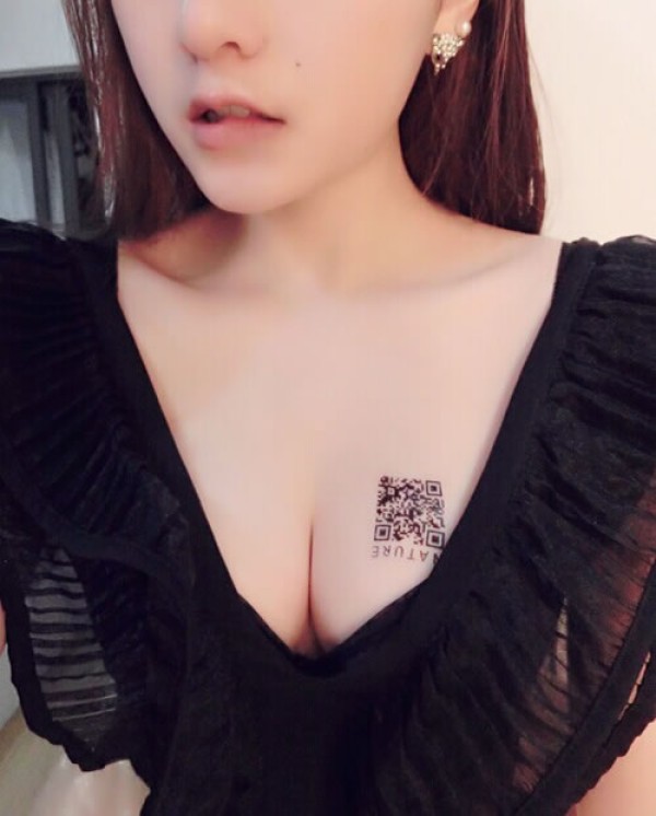 胸部新颖的二维码纹身图案美女胸部的二维码纹_胸部纹身图案大全_纹身图吧