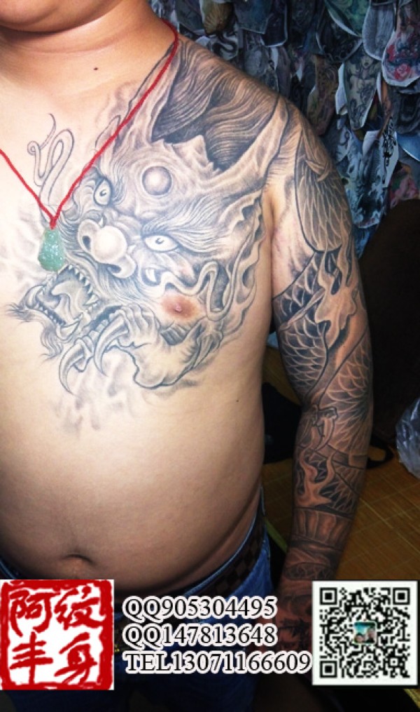 最流行的胸部纹身图案大全盘臂的素色过肩龙纹_胸部纹身图案大全_纹身图吧