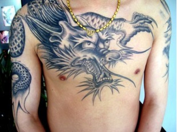 推荐几款过肩的胸部纹身作品大龙头过肩纹身作_胸部纹身图案大全_纹身图吧