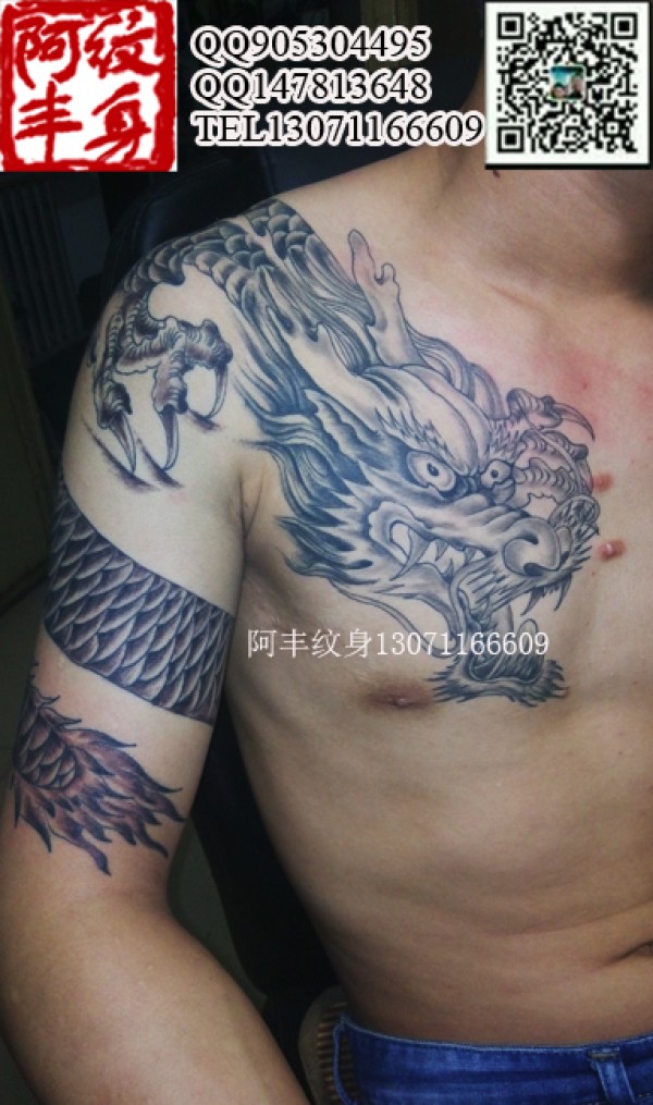 胸前素色过肩龙纹身_胸部纹身图案大全_纹身图吧