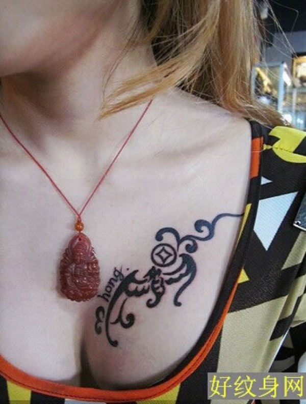 胸前漂亮潮流的美女纹身图案_胸部纹身图案大全_纹身图吧