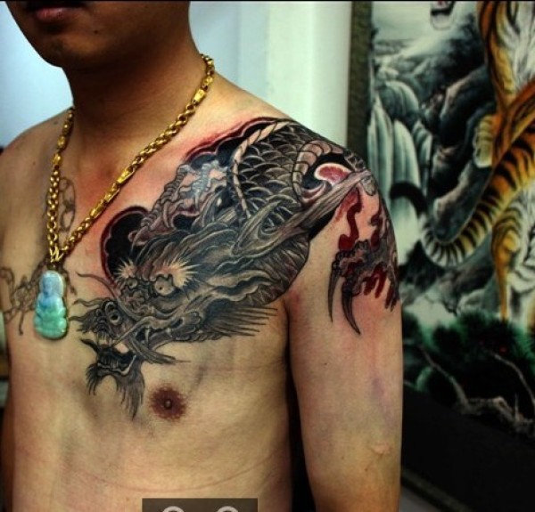 男人胸前超酷霸气的蝎子纹身图案_胸部纹身图案大全_纹身图吧