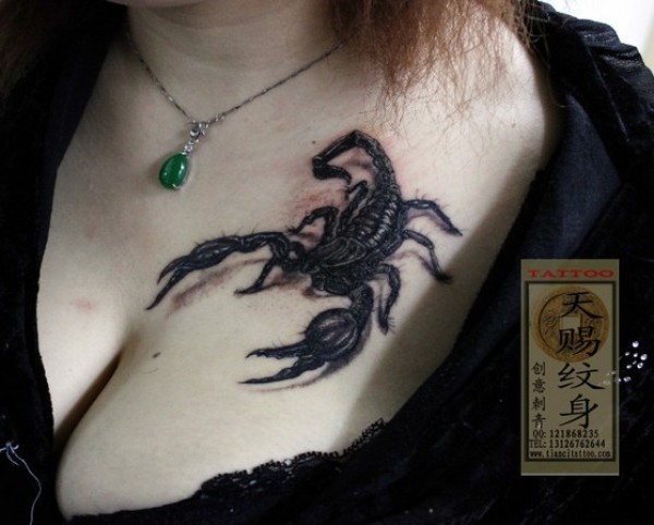 男人胸前超酷霸气的蝎子纹身图案_胸部纹身图案大全_纹身图吧