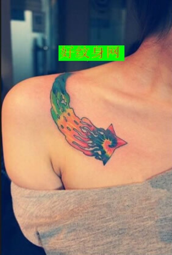 女士胸部彩色的流星图案纹身拖着长尾巴的流星_胸部纹身图案大全_纹身图吧