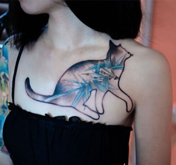 女生胸部乖巧可爱的小猫纹身图案光影风格猫咪_胸部纹身图案大全_纹身图吧