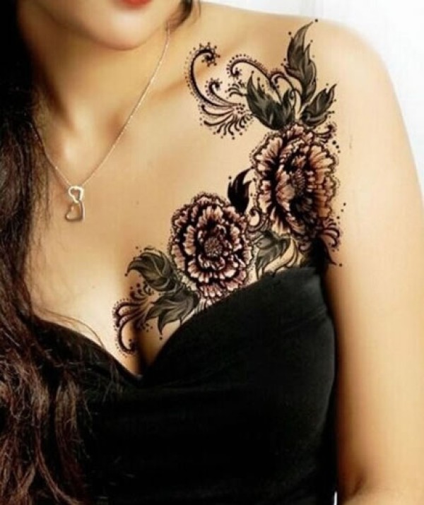铺满美女胸部的花纹身图案铺在美女胸部的花团_胸部纹身图案大全_纹身图吧