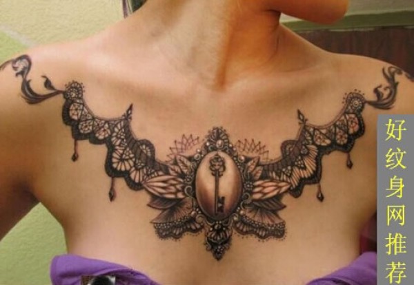 美女胸部时尚性感的蕾丝纹身图案_胸部纹身图案大全_纹身图吧