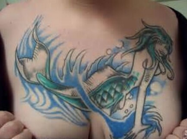 胸部美人鱼纹身戏水美人鱼纹身_胸部纹身图案大全_纹身图吧