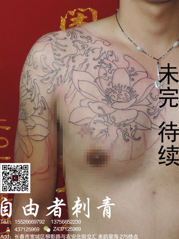 浪里荷花半甲纹身割线布局图纹身图案割线布局_胸部纹身图案大全_纹身图吧