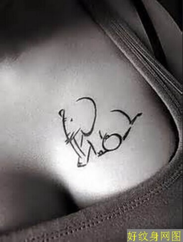 美女胸前乖巧的小象纹身图案美女胸部的单线大_胸部纹身图案大全_纹身图吧