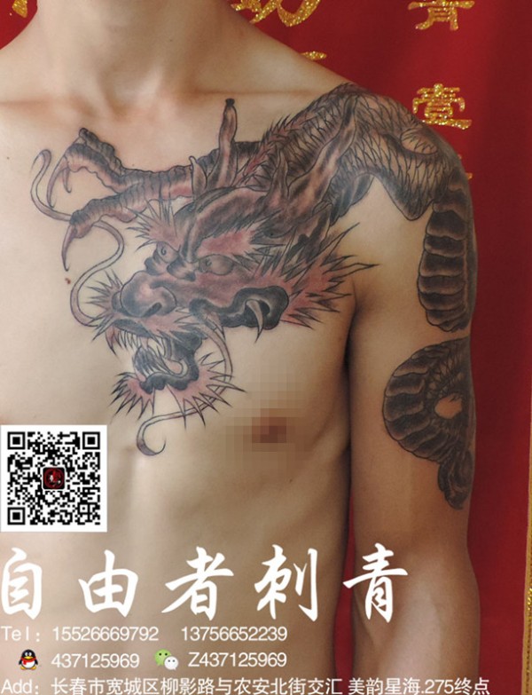 自由者刺青过肩龙纹身作品欣赏过肩龙纹身作品_胸部纹身图案大全_纹身图吧