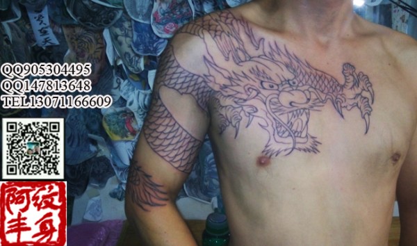 经典纹身图案之胸部过肩龙纹身单线过肩龙纹身_胸部纹身图案大全_纹身图吧